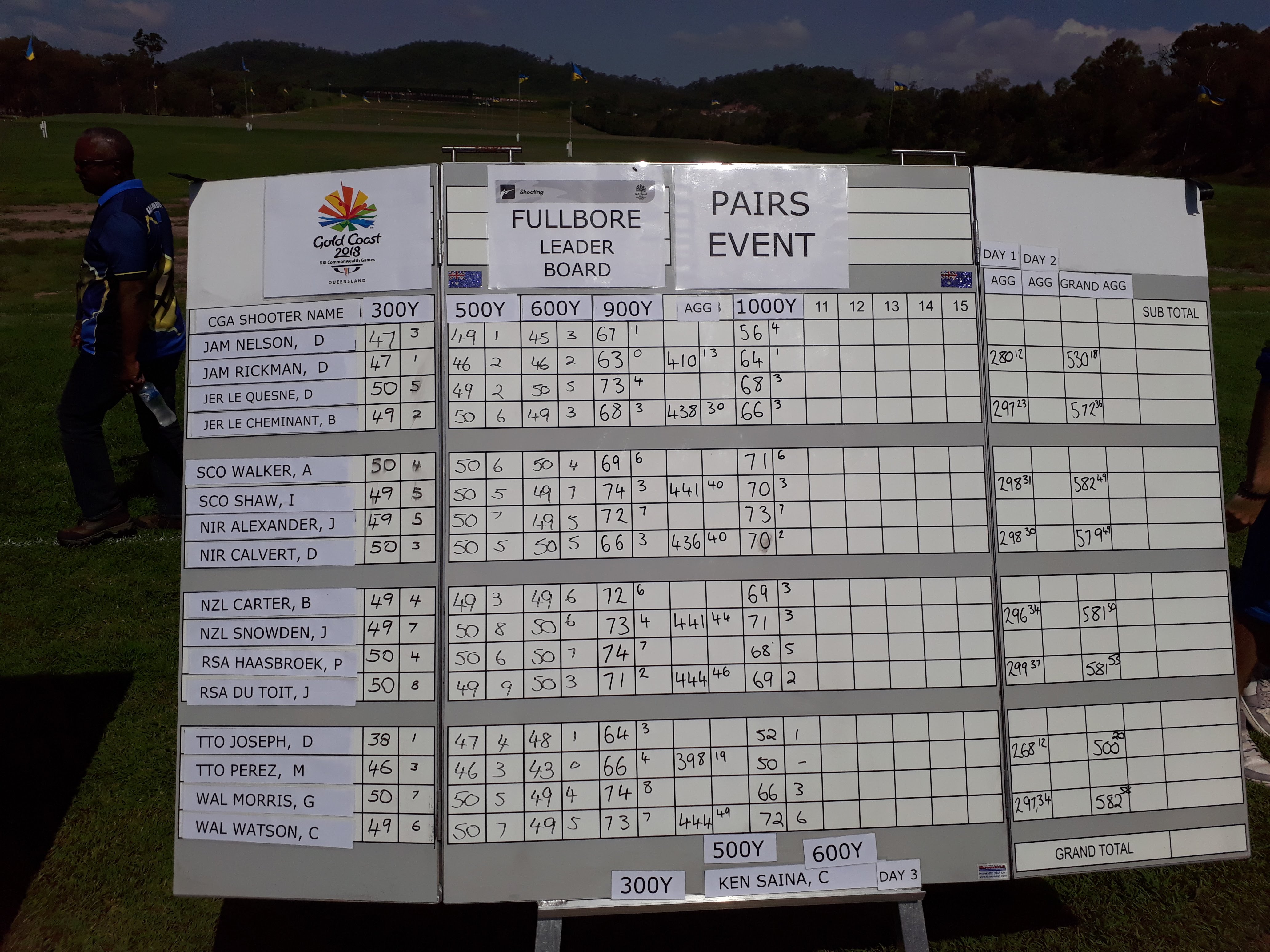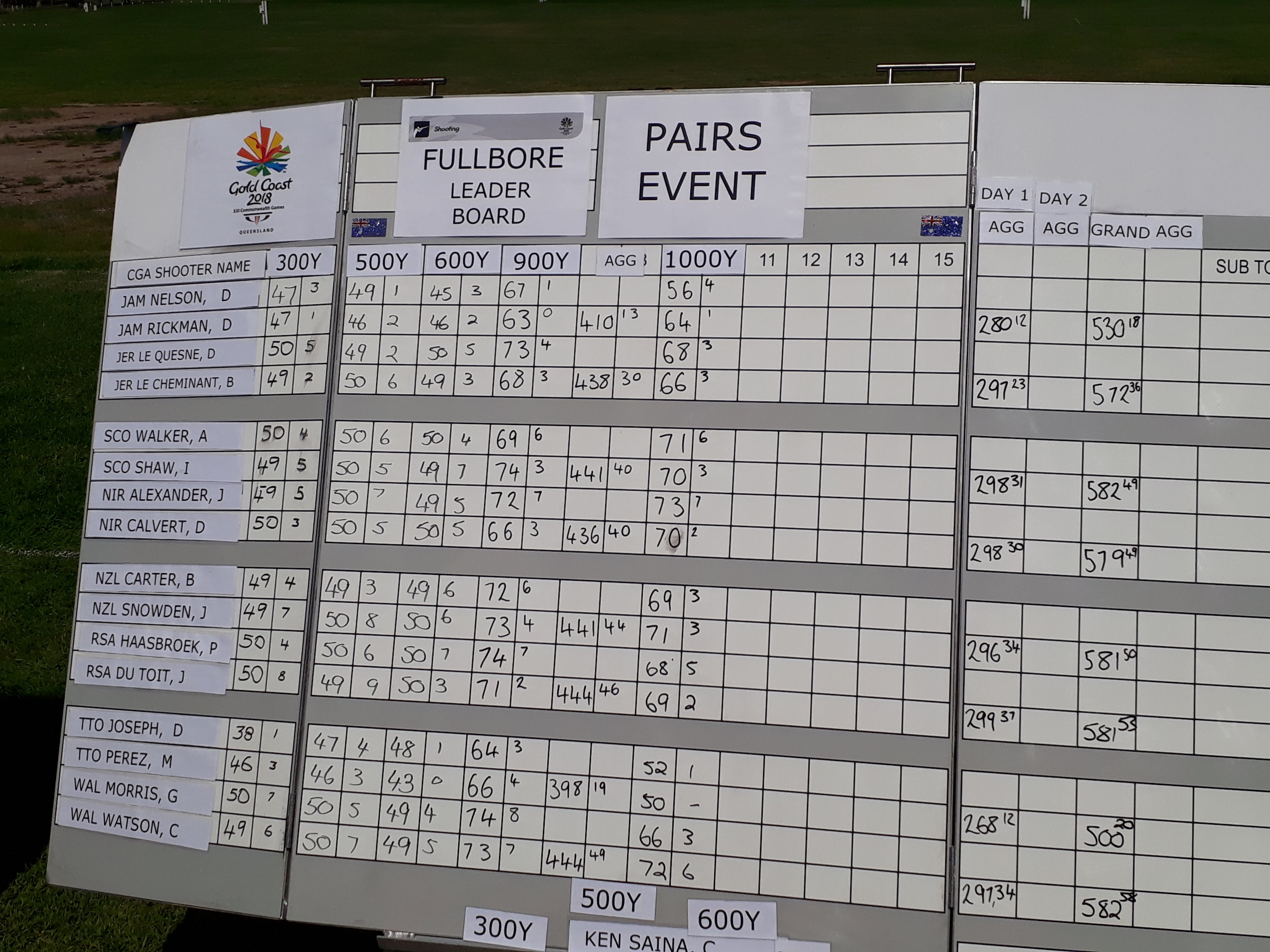 Well the pairs final is over. It got quite exciting in the end after 1000 yards with only 3 points between 1st and 5th places. We ended 5th, which while disappointing, we did shoot the same score today as the winners did. If we had a better start yesterday, a little more luck and one more point, we would have had the bronze.
