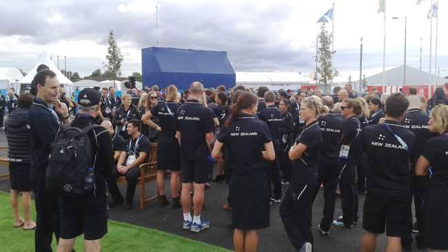 Mike and I arrived at the Glasgow Games Village to do our accreditation etc just as the NZ team were given a welcome and flag raising ceremony. It was great to be part of it. The village is impressive, all brand new apartments which will  be turned into retirement units after. We then bused up to Carnoustie to our digs (The Carnoustie Golf Hotel!!) Some teams are here, the others are about 15 km south at Dundee.