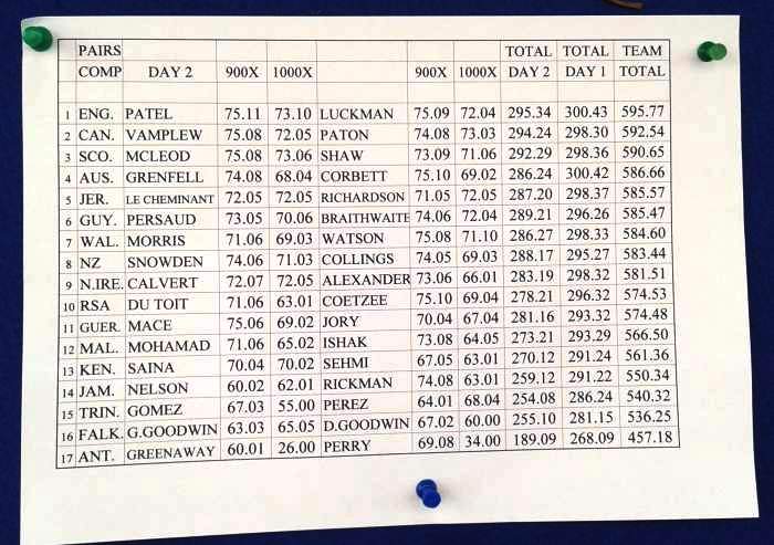 Mike and John both shot 74's which was a good result on the first detail to move up to 7th, which should have meant on the seeding, they would shoot in the 2nd detail at 1000yds. However because it was already after 5pm they left the squads as is and M&J shot in the first detail and copped a downpour during their 15 shots for a score 10 down which again was good in their detail. As they finished, the rain cleared to allow some great scores in the second detail. England shot an amazing score as did Canada and Scotland.
