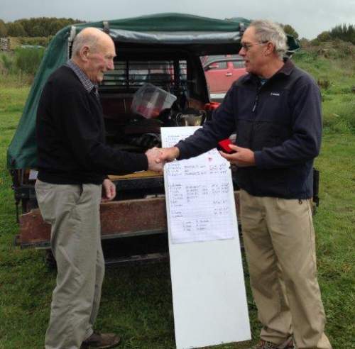 Jim Marshall was presented with the Distinguished Service Medal to recognise his many years of service to fullbore shooting. He joined the Malvern club in 1964 and since then has held many positions within the club and the Canterbury Rifle Assn. Jim is patron of the CRA and is always on hand to present the prizes of our meetings. A group photo was taken of today's shooters with Jim.